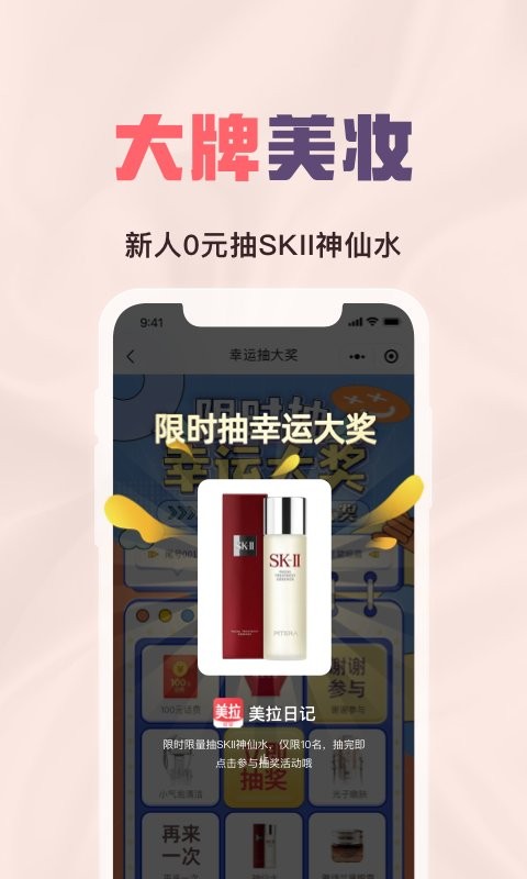 抽奖赢大牌正品美妆好物优惠券,平台羊毛等你来薅;新增多种互动玩法,提升用户参与感和获得感。