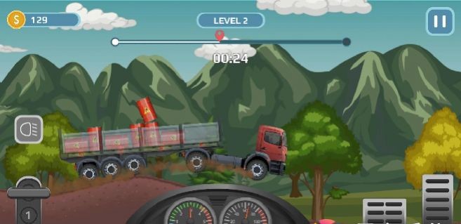 按钮控制卡车前进,要保证货物不能少哦,这样才能赚取更多的钱。完成多项运输工作到底终点。