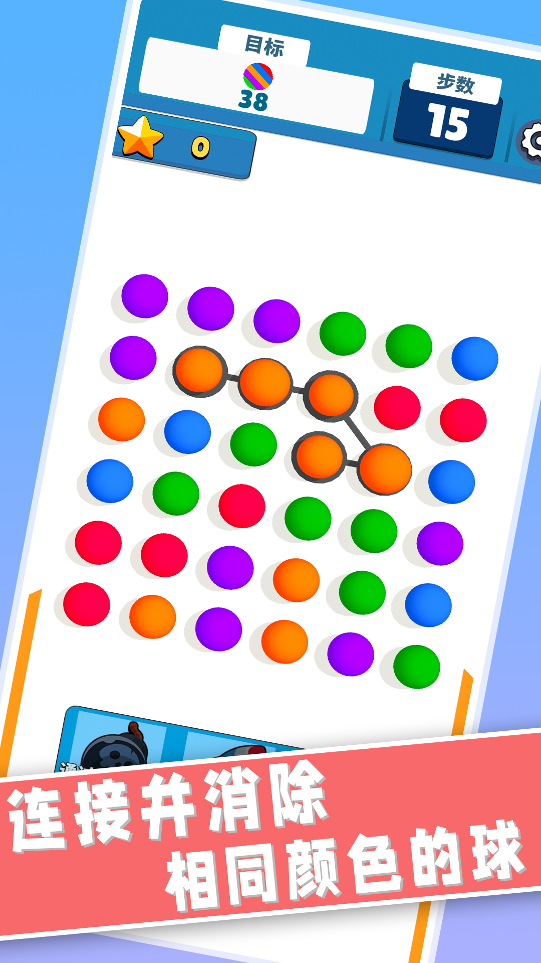 连接并消除相同颜色的球球!连线越长消除越爽,分数也越高!每次成功消除都会触发炫酷的特效,带来视觉和听觉的双重享受。