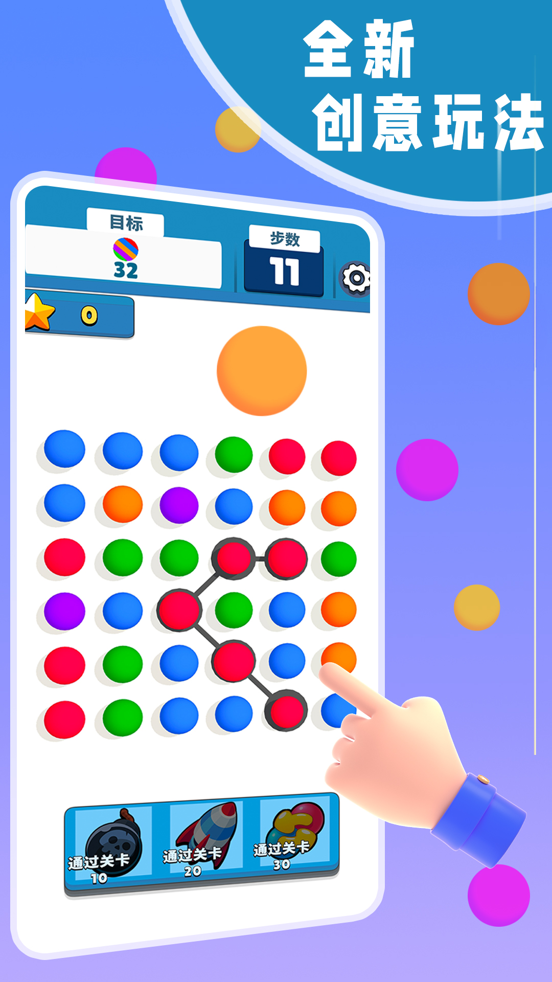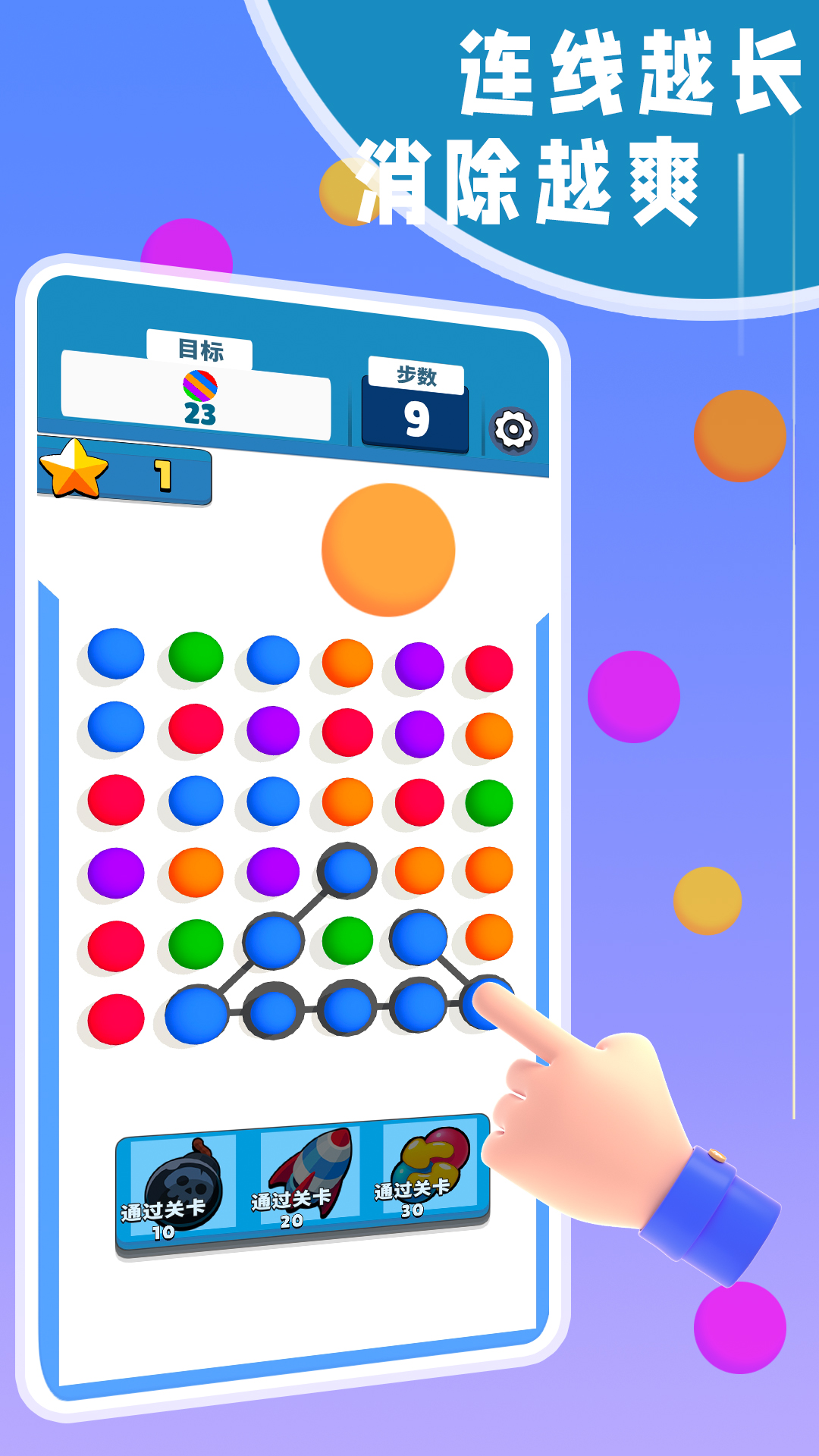 游戏易上手,点击并拖动来连接相邻的同色球球。系统会实时显示连线效果,让你轻松掌握操作技巧。