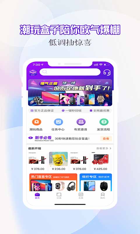 潮玩盒子app是一款专注于正品盲盒购物的潮流平台,汇集了众多正版授权的盲盒商品,涵盖游戏、动漫、明星周边等多个领域。无论是热门IP的限定款,还是独家发售的珍藏品,这里都能找到。平台商品价格亲民,品质有保障,让用户在享受购物乐趣的同时,也能放心购买。如果你热爱潮流文化,喜欢收集新奇有趣的物品,潮玩盒子app绝对是你的不二之选!