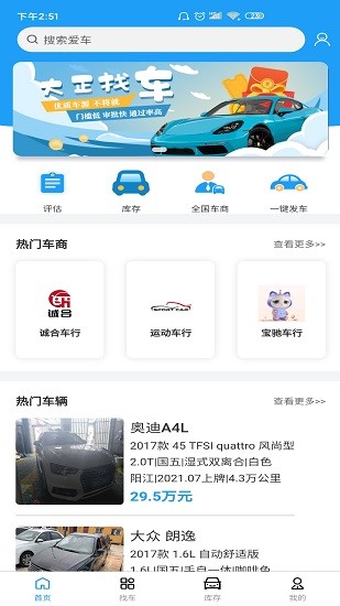 大正找车是一款基于独特商业模式开发的购车服务平台,它通过整合全国各地的优质车商资源,为用户搭建了一个专业、高效的汽车交易平台。无论是个人用户还是车商,都能在这里找到合适的交易机会。平台不仅提供丰富的车源信息,还支持在线咨询、车辆评估、价格对比等功能,让购车过程更加省心省力。