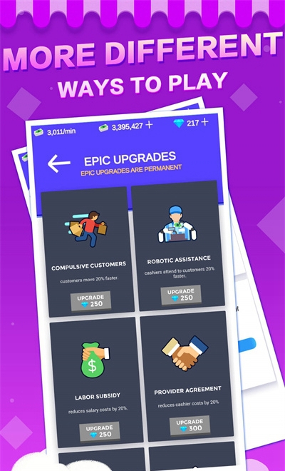 游戏提供了极其丰富的经营内容和多样化的选择,每位玩家都能在这里找到适合自己的经营策略。独特的职业发展系统让玩家可以从基层员工做起,逐步成长为商业精英。游戏还设计了多种经营模式,包括限时挑战、特殊任务等,确保玩家始终能体验到新鲜内容。精心设计的游戏机制将商业经营的复杂性与休闲游戏的趣味性完美结合,保证玩家在享受经营乐趣的同时不会感到压力过大。