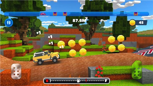 方块骑手公路赛(Blocky Rider: Roads Racing)顾名思义就是一款方块像素的汽车驾驶游戏。打开游戏玩家就将进入到一个像素的世界中,在这里玩家驾驶着自己的像素汽车开始冒险,去到各个不同地图收集金币,获得的金币越多能够购买的道具也就越多。但是玩家需要注意好汽车的油量,没有油的话一定要及时加油哦。