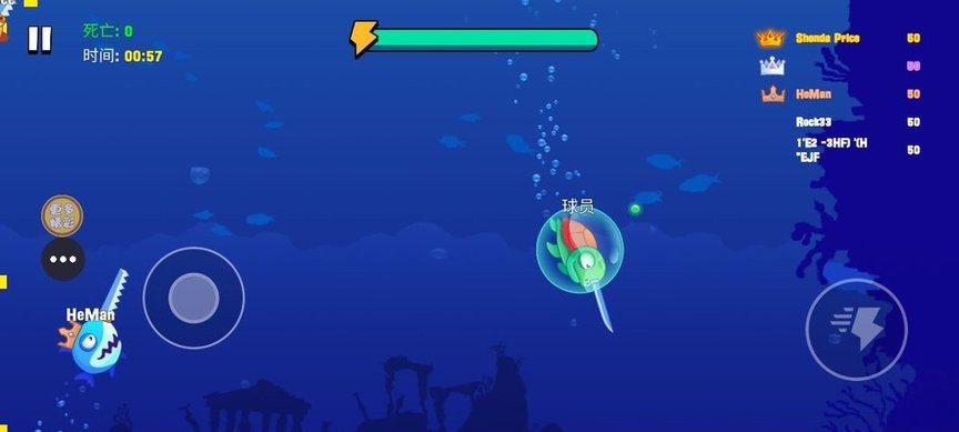 2、发挥出小鱼的作用,每次击败都将鱼头收集到您的刀片上。收集3个头可升级为中型刀片。收集5个头可升级为巨刃。尽情在海底战斗。这个独特的成长系统让玩家能直观感受到实力的提升,从最初只能欺负小鱼小虾,到最后可以挑战巨型章鱼甚至潜艇。每次进化都会解锁新的必杀技,比如高速冲刺撕咬或死亡旋转。