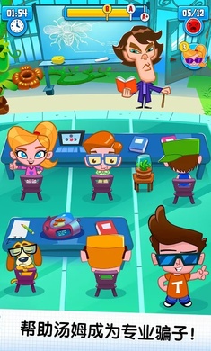 在这款令人捧腹的恶作剧游戏中,汤姆将以全新的形象王者归来,他的作弊手段比以往任何时候都更大胆!游戏背景设定在一所天才学校,玩家需要帮助汤姆假扮成优等生,在生物、历史、艺术、科学和体育等各个学科领域施展骗术。随着剧情发展,学校背后隐藏着一个惊天阴谋:教员们正在利用吸脑机窃取学生们的智慧。玩家必须帮助汤姆在完成作弊任务的同时,揭露这个邪恶计划,保护自己的大脑不被吸干。游戏包含多个精彩章节,每个场景都设计巧妙,需要玩家开动脑筋才能顺利通关。