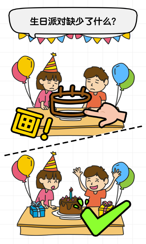 打破常规,画出关卡中关键缺失的部分,才能过关。