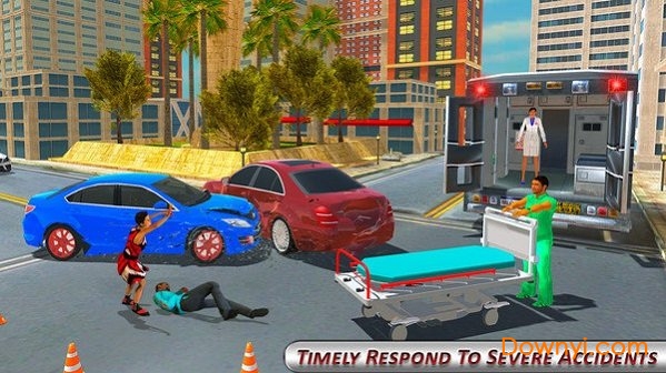 1、简单模拟器控制无缝驾驶机动;游戏采用直观的触控操作方式,左侧虚拟方向盘控制方向,右侧按钮实现加速、刹车和警笛功能。特别优化的物理引擎让车辆操控既真实又易于上手,新手玩家也能快速掌握救护车驾驶技巧。