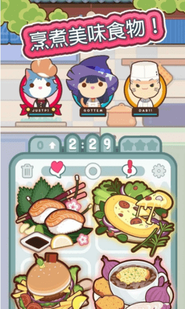 1.游戏中每位厨师都拥有独特的烹饪技能,他们会用不同的方法制作美食。这些个性化的技能系统让每个角色都充满特色,玩家可以根据自己的喜好选择不同的厨师进行游戏。