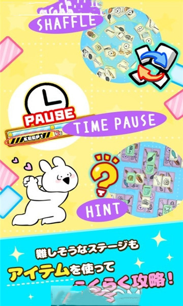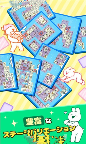 这是一款以可爱兔子为主题的消除解谜游戏。游戏灵感来源于在LINE和KakaoTalk上广受欢迎的"非常动人的兔子"贴纸系列。玩家需要通过找出相同图案的方块进行消除,帮助兔子打扫房间。游戏节奏明快,玩家可以轻松找到匹配的图案,点击消除方块来清理房间。连续消除多个方块时会产生连锁反应,带来爽快的游戏体验。游戏不需要玩家具备高超的反应能力或复杂的计算能力,任何人都能轻松享受其中的乐趣。