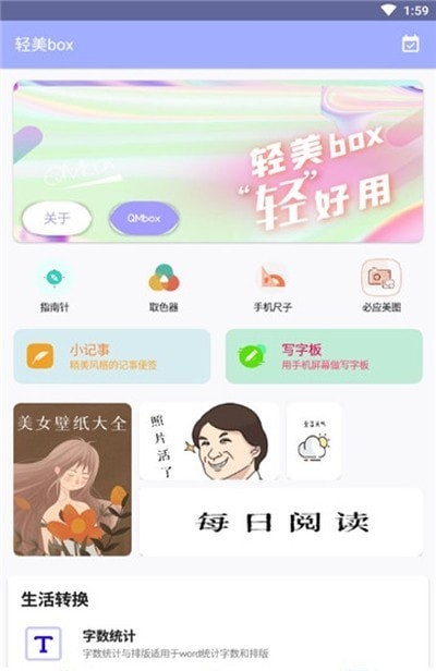 轻美box多种没有任何广告的智能操作的页面,也是任由用户免费的体验不同的服务的模式。