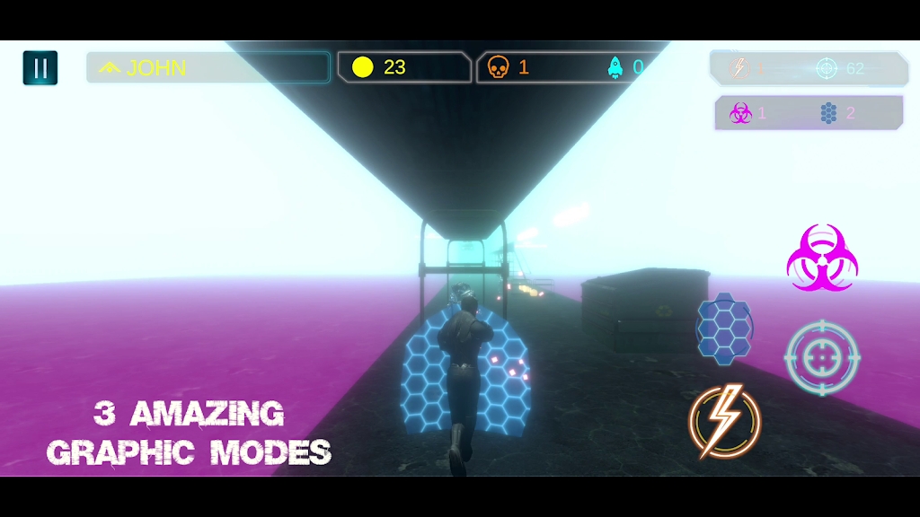 1、游戏核心玩法简单易上手但极具挑战性,玩家需要不断收集能量电池来强化角色能力,当能量积累到一定程度时角色会进入爆发状态,获得特殊技能。