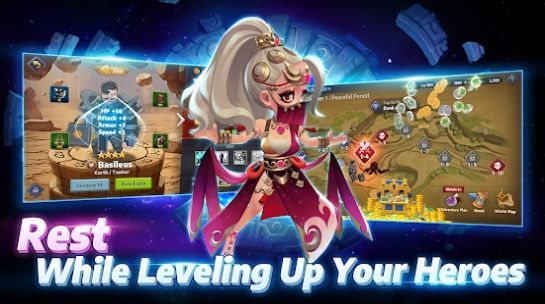 1.创新的放置玩法让游戏过程轻松惬意,只需派出英雄小队,他们就会自动为你战斗,同时还能获得丰厚奖励和稀有装备。
