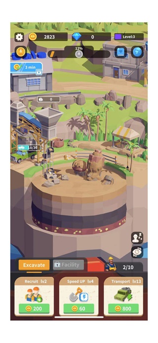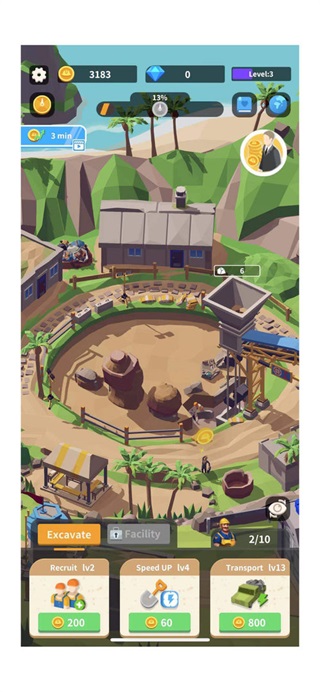 游戏采用智能挂机系统,即使离线也能持续获得收益。玩家可以雇佣不同类型的工人,每个工人都有独特的技能树,通过合理搭配可以大幅提升挖掘效率。装备系统丰富多样,从基础的铁镐到高科技的地质雷达,让挖掘过程充满成就感。特别设计的"工人管理系统"会随机触发特殊事件,比如发现隐藏矿脉或遭遇塌方事故,需要玩家及时做出决策。游戏还加入了工会系统,可以与其他玩家组队挑战大型遗迹。