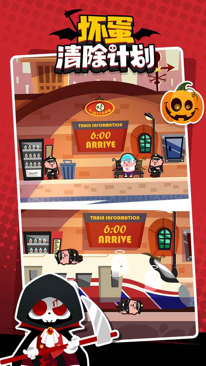 《坏蛋清除计划》是一款充满创意与策略的趣味闯关游戏,灵感源自经典电影《死神来了》的巧妙陷阱设计。玩家将化身为幕后操纵者,在精心布置的场景中利用各种道具和环境互动,悄无声息地消灭所有目标。游戏强调隐蔽行动与连环计谋的结合——既要确保陷阱的致命性,又要避免被警觉的坏蛋们发现破绽。从摇晃的吊灯到突然坠落的广告牌,每个关卡都暗藏十余种脑洞大开的机关组合,随着难度提升还将解锁需要精密时序控制的"连续作案"模式。卡通渲染风格搭配黑色幽默的处决动画,让这场正义制裁行动既紧张刺激又妙趣横生。