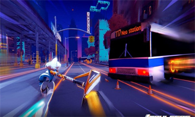 2.科幻风格的背景设置会给你带来不同的乐趣。大量的酷轨和道具会给你最好的跑酷过程。游戏场景设定在22世纪的新东京,玩家可以在摩天大楼间飞跃,穿梭于全息广告牌之间,甚至进入虚拟数据空间进行跑酷。