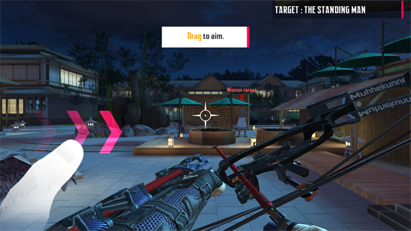 3、进入游戏后点击左侧寻找目标,控制弓箭进行移动;利用环境掩体隐蔽身形,通过双击屏幕可实现快速翻滚闪避;