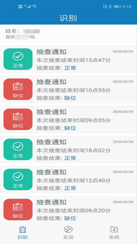 2. 学生通过App完成账号激活后,可实时接收抽检通知,按要求完成面部识别验证。系统会自动生成完整的抽检记录,包括时间、地点、结果等信息,方便学生随时查询历史记录。