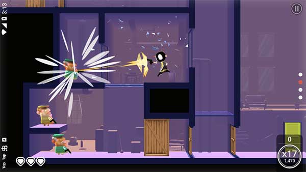 游戏采用创新的触控操作方式,通过手指滑动控制角色移动和跳跃方向。长按屏幕可以进入慢动作模式,这时可以更精准地规划攻击路线和射击角度。