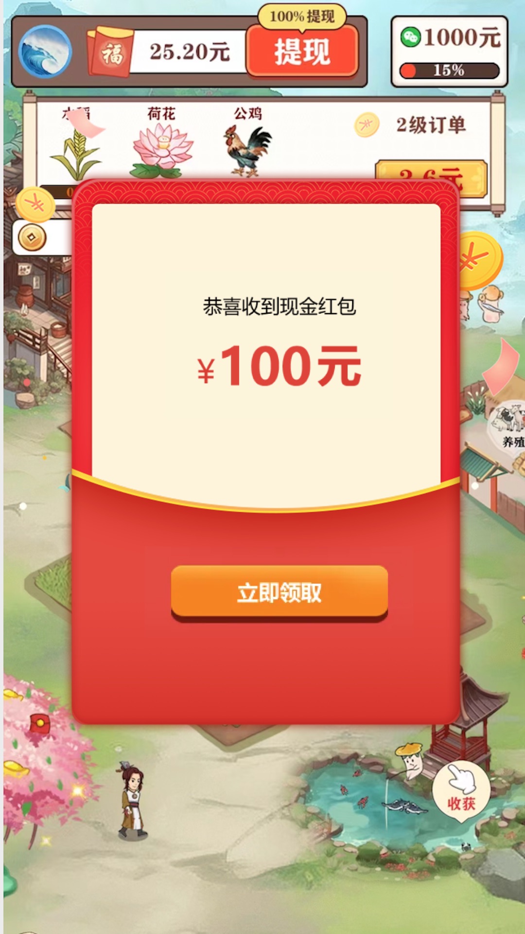 悠悠桃源红包版是一款融合田园种植与红包奖励的休闲经营游戏。玩家将化身农场主,在虚拟桃源中体验播种、收获的乐趣,同时通过双奖励机制赚取真实红包。游戏采用直观的点击操作,支持一键种植加速,轻松实现"种瓜得瓜,种豆得豆"的丰收喜悦。除了基础种植玩法,还融入订单交易、好友互动等趣味系统,所有红包收益均可实时提现到微信零钱。古风场景与Q版作物相映成趣,让玩家在赚钱之余享受"采菊东篱下"的悠然意境。