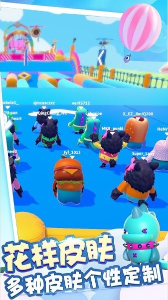 不同的皮肤有不同的游戏效果体验,每个关卡的设计都非常人性化。游戏提供了数百种个性化装扮,从可爱的动物造型到炫酷的机甲风格,让你的糖豆人独具特色。