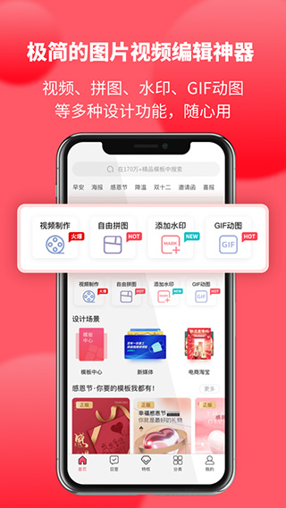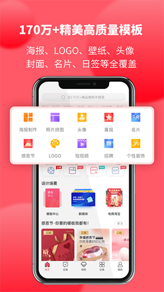 软件支持60+常见设计场景,从个人使用的头像壁纸,到企业级的营销物料设计,一应俱全。特别针对新媒体运营需求,提供公众号封面、朋友圈九宫格、小红书配图等专属模板,让内容创作事半功倍。