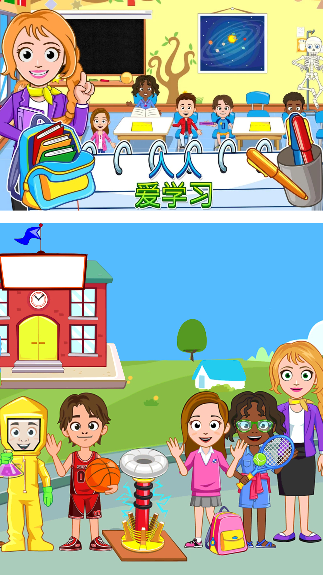 2、温馨的校园生活场景营造出强烈的代入感,欢乐的小镇环境等待玩家探索,丰富的互动玩法带来持续不断的游戏乐趣。