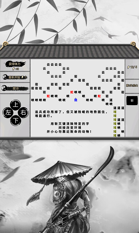这款江湖题材的文字解谜游戏以汉字为基石,构建出一个充满东方韵味的奇幻世界。游戏采用极简的黑白水墨画风,通过文字本身的形态变化营造独特视觉体验。玩家需要运用"偏旁部首拆分""汉字重组"等创新玩法破解谜题,比如用"破"字击碎障碍,用"碎"字瓦解冰墙。游戏巧妙地将汉字学习与趣味解谜相结合,既能锻炼逻辑思维,又能加深对汉字结构的理解。随着关卡推进,玩家将逐渐掌握"拉、拆、消、合"等文字操控技巧,在脑洞大开的文字迷宫中寻找通关之道。