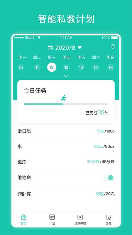 智能私教计划:基于用户身体数据和目标,AI算法自动生成最适合的训练方案,并随进度动态调整