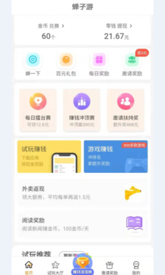 蝉子游APP是一款集娱乐、购物、赚钱于一体的多功能应用平台。在这里,用户不仅能享受海量优惠券带来的购物乐趣,还能通过丰富的小游戏和任务挑战赢取现金红包。无论是日常购物还是休闲娱乐,蝉子游都能满足你的需求。平台提供多样化的赚钱方式,包括邀请好友、每日签到、完成任务等,让用户在享受优惠的同时轻松赚取额外收入。操作简单便捷,提现快速到账,是省钱达人和兼职赚钱爱好者的不二之选。