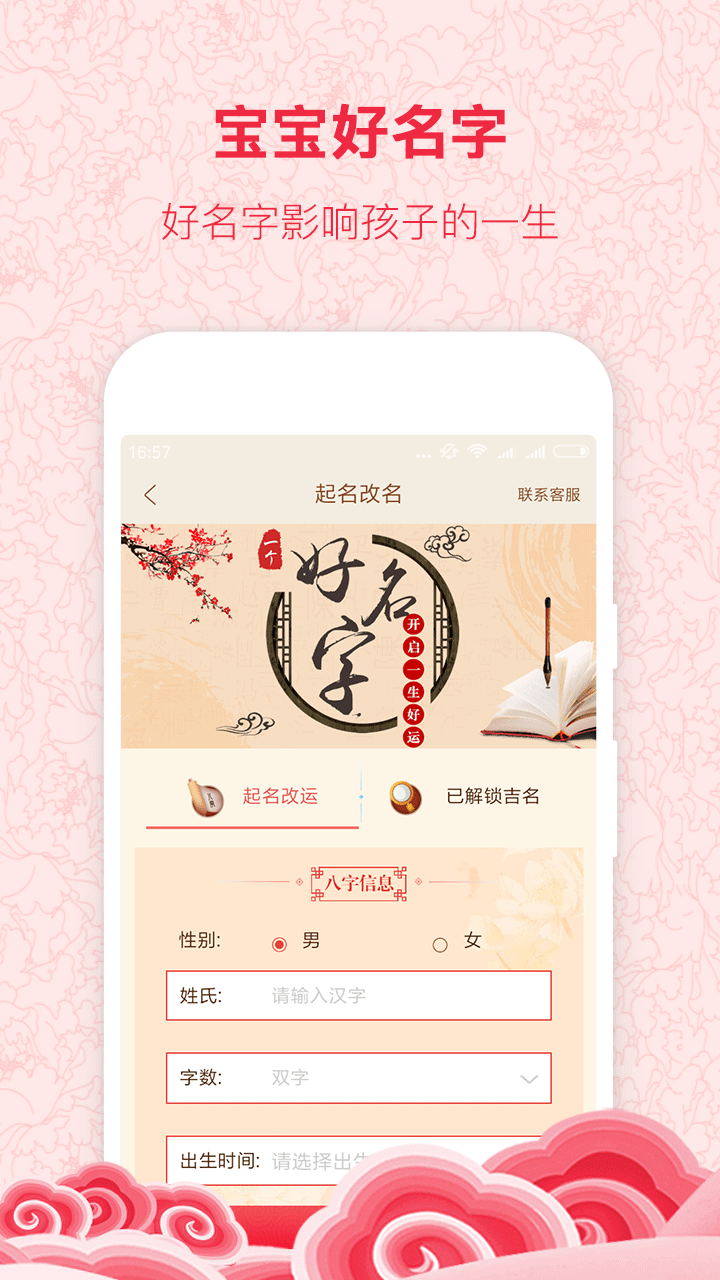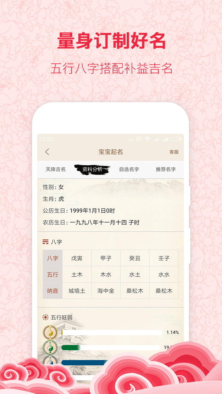 【宝宝起名】:富贵好名伴你一生,万年历测算出好名字,让你算命,幸福一生。系统内置超过10万个汉字库,支持多种起名方式:可按生肖喜忌筛选,依诗词典故挑选,或根据音形义综合评分。每个推荐名字都附带五格分析、笔画吉凶、音调搭配等详细解读,让取名既科学又有文化底蕴。