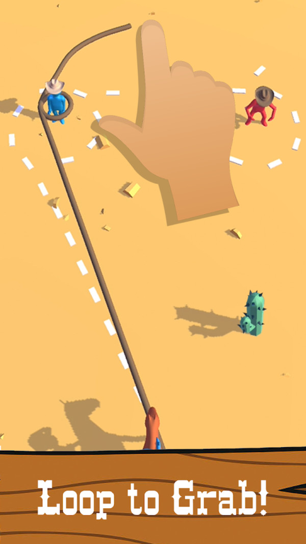 在广袤的西部荒野上,牛仔们总是带着标志性的牛仔帽,腰间别着左轮手枪,骑着骏马驰骋。《牛仔绳索大战》将带你体验最原汁原味的西部牛仔生活,但这次你的目标不再是野兽,而是要用手中的绳索来套住其他牛仔。这款游戏完美还原了西部风情,让你在手机上就能感受到当牛仔的乐趣。通过简单的手指滑动操作,你就能抛出绳索,将对手一个个套住。游戏画面采用独特的卡通像素风格,既保留了西部元素,又增添了趣味性,是一款适合所有年龄段的休闲游戏。