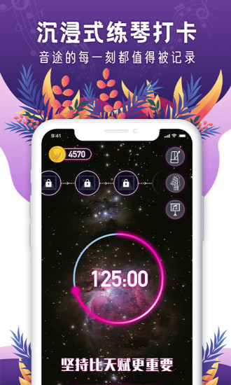4、一起练琴:练琴,你的奋斗时光。平台提供专业的练琴辅助工具,包括节拍器、调音器、录音回放等功能。系统会自动记录你的练琴时长和进度,生成可视化数据报告,帮助你科学规划练习计划,见证自己的进步轨迹。