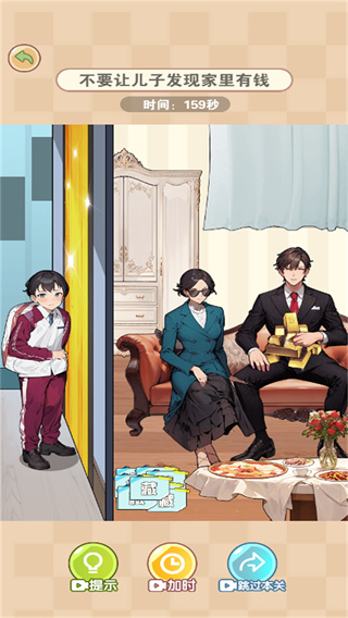 3、注意在有限的时间内完成游戏,合理挑战,最终轻松提升通过关卡的效率等。游戏设置了合理的倒计时机制,既增加了紧张刺激感,又不会让玩家感到过于焦虑。随着游戏进程,玩家可以逐渐掌握快速发现线索的技巧,提高通关效率,获得更好的游戏体验。