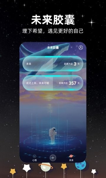 2、制作未来胶囊功能:提供精确到分钟的未来信件设置,用户可自由选择1天后至10年后的任意时间节点,系统会在设定时间通过推送通知提醒开启。新增的多人共享胶囊功能,允许用户邀请亲友共同撰写给未来的联名信件。