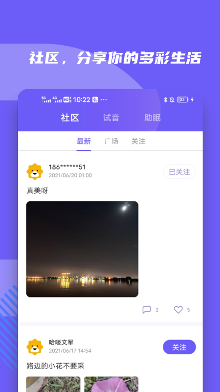 【社区,展示多彩生活】打造垂直音频社交圈,用户可分享歌单、创建话题、参与互动,发现志同道合的音乐伙伴