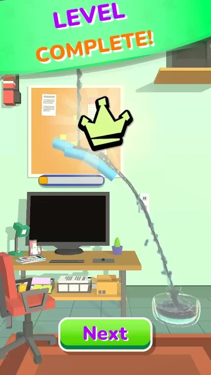 2.在游戏中,你要画线将水倒进杯子,并画出适当的线让水流入杯子。这个游戏玩起来很新奇。游戏的核心玩法简单易懂,但实现完美通关需要精确计算和巧妙设计。玩家需要观察水流特性,预测水流路径,找到最优解决方案,这种过程既考验逻辑思维又充满成就感。