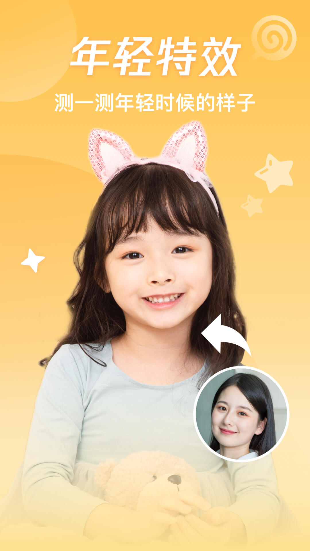 【变年轻】通过智能算法还原年轻面容,轻轻一点即可回到童年时光,重温青涩岁月的美好记忆。