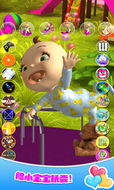 ·安抚系统设计巧妙,当宝宝哭闹时,玩家可以选择弹奏钢琴、播放摇篮曲等多种方式安抚。最新版本还新增了亲子按摩等互动内容。