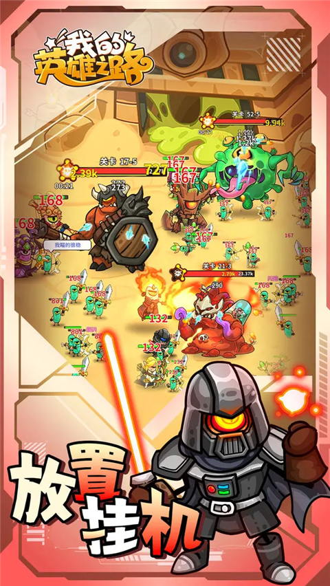 我的英雄之路是一款轻松有趣的休闲放置类手游,玩家将化身星球指挥官,肩负起保卫家园的重任。面对源源不断的怪物入侵,你需要通过升级工厂设施、强化细胞战士军团、召唤强力英雄来组建强大的防御力量。游戏采用放置玩法与策略经营相结合的模式,玩家可以自由建造基地、生产士兵、打造武器装备,并通过升级生命值和攻击力来提升部队战斗力。随着关卡推进,战斗难度逐渐增加,但丰富的成长系统和爽快的推图体验让游戏充满乐趣。现在就加入这场史诗般的星球保卫战,带领你的英雄军团夺回家园吧!