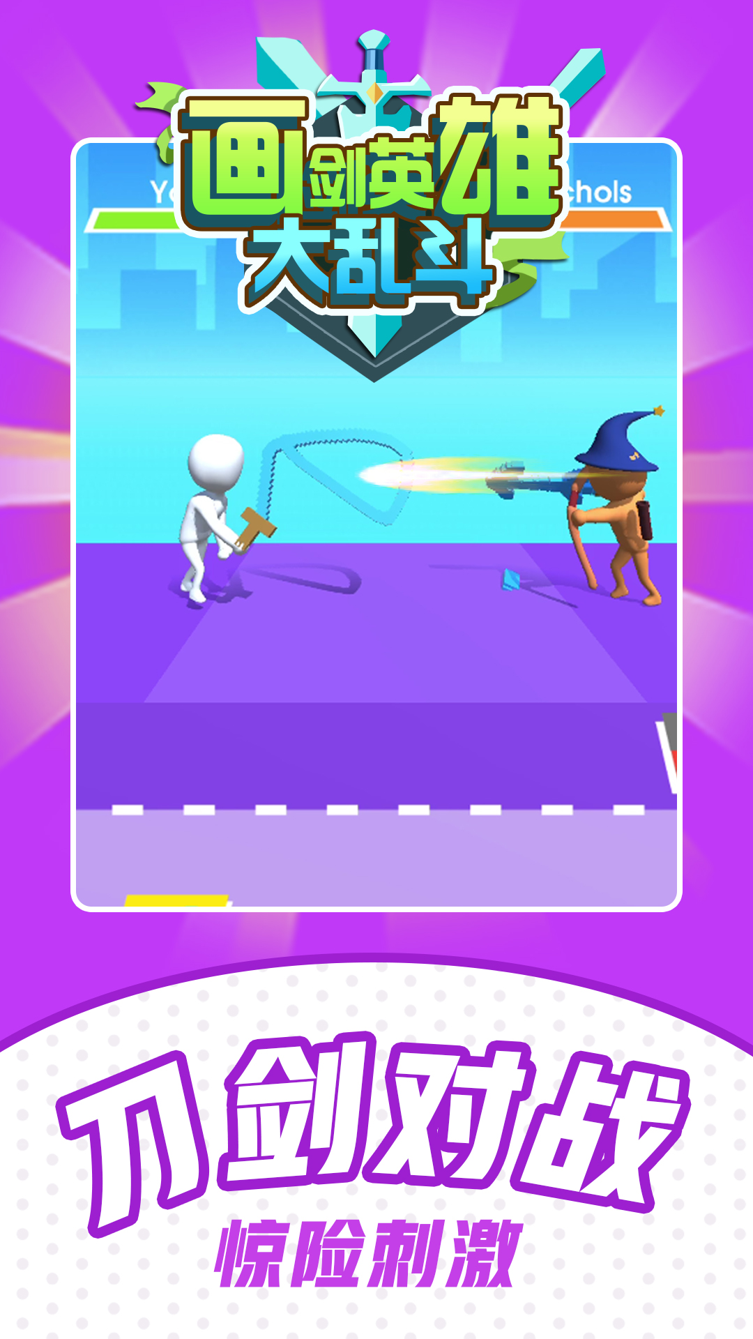 《画剑英雄》是一款充满创意与欢乐的休闲大乱斗游戏,以其独特的画风和无厘头的玩法吸引了众多玩家。游戏中,你可以解锁各种可爱的橡皮小人角色,并通过自由绘制武器来展开激烈的1V1对决。无论是弓箭、长矛还是其他脑洞大开的武器,只需动动手指就能轻松创造。战斗节奏明快,玩家需要不断绘制武器进攻,同时灵活应对敌人的攻击。简洁的像素风格画面搭配丰富的色彩,让整个游戏世界充满活力。快来加入这场充满乐趣的大乱斗,用你的创意和技巧击败对手吧!