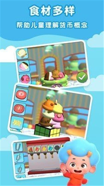 2、冰淇淋套餐制作,认识更多蔬菜水果种类。游戏内置百科功能,点击食材会出现趣味知识卡片;