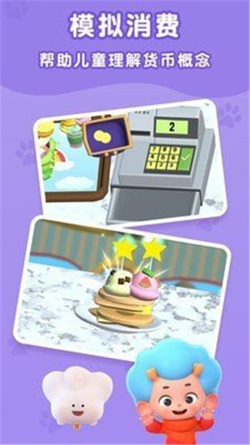 2、体验结账,理解货币概念。收银台系统会计算找零,模拟真实交易场景;