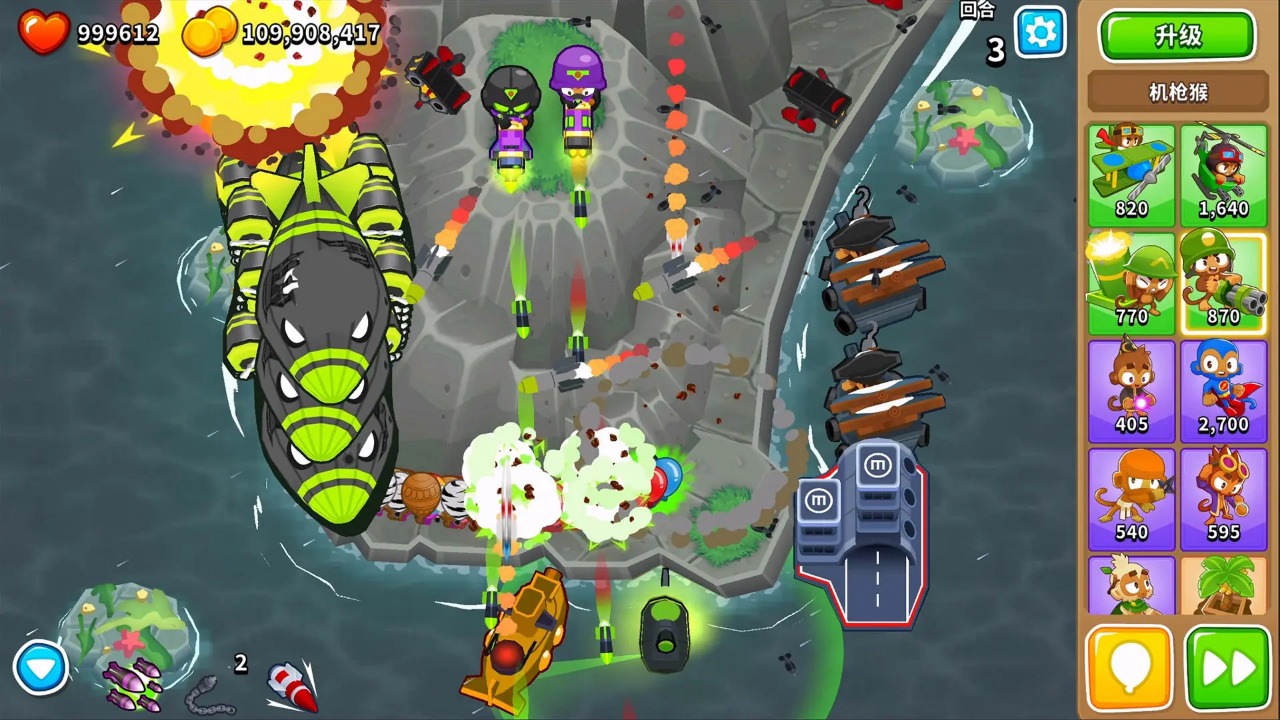 3.升级塔防:击败气球敌人可获得金币,用于升级防御塔的各项属性。建议优先升级攻击范围和攻击速度,再考虑特殊技能解锁。