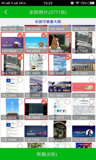 4.长按图片可查看大图,轻点照片可以勾选要恢复的相片。支持多选操作,最多可同时恢复100张照片