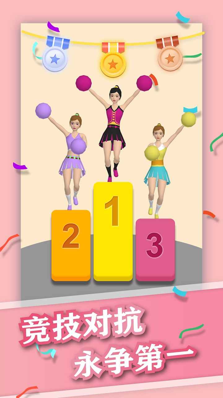 《美女叠高高》是一款充满活力的啦啦队主题休闲IO游戏,玩家将扮演一名啦啦队队长,通过招募队员、收集道具和策略对抗来打造最强团队。游戏以轻松欢快的节奏为核心,玩家需要操控不断壮大的啦啦队人群,在场景中灵活移动,躲避强敌的同时击败弱小对手。色彩明快的3D场景搭配Q版角色设计,营造出充满竞技乐趣的休闲体验。无论是收集钻石解锁新装扮,还是使用特殊道具扭转战局,都能让玩家感受到层层递进的游戏乐趣。