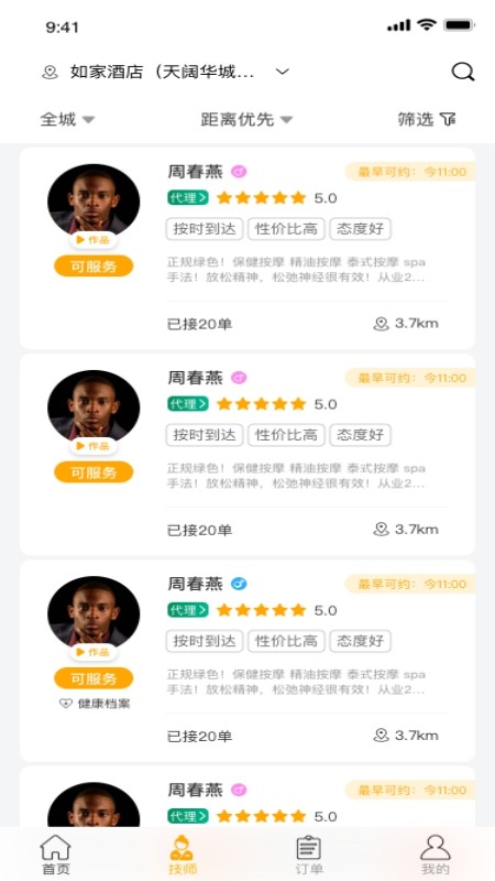 价格完全透明,所有服务项目的收费标准、时长说明、附加费用等都清晰标注,杜绝隐形消费,让用户消费得明明白白。