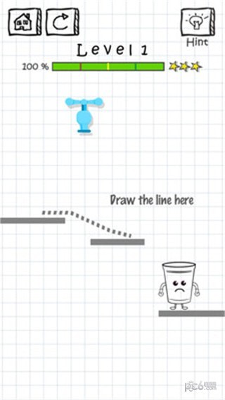 1、游戏的核心玩法是让空杯子重新绽放笑容。玩家需要运用物理知识绘制线条,引导蓝色的水流填满玻璃杯。每个关卡都需要独特的解决方案,考验玩家的创造力和空间想象力。