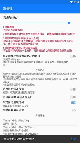 2.清清理app易于操作界面简单,自动清洗功能非常实用。