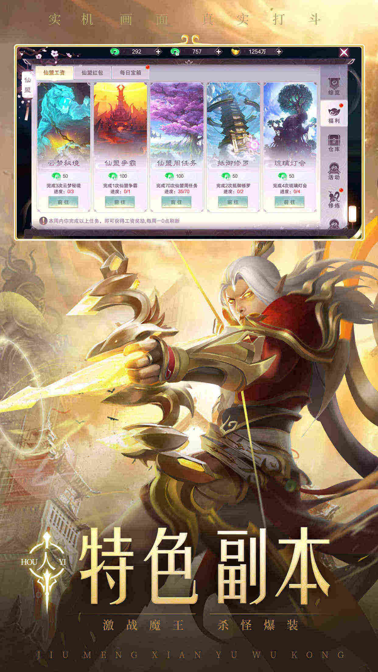 1、惊世仙战无敌纵横,仙路无双实力才是根本,遇到新的挑战完成各种任务。游戏独创"天劫试炼"系统,玩家需在九重雷劫中突破境界,每渡过一重天劫都能解锁特殊天赋。宗门大比、仙盟争霸等大型活动每周轮换,获胜者可获得上古传承秘宝。
